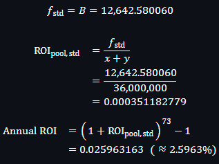 We can calculate the expected ROI for an average pool with 35M stake and 1M pledge before this CIP as follows: