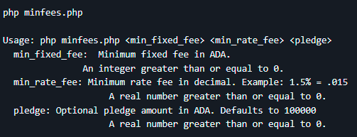 The PHP code in minfees.php in the pull request allows exploration of the effects of choosing different values for the minimum fixed and variable fees. Running minfees without any arguments gives the usage message as below.